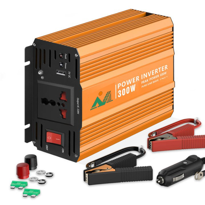 An inverter is an electrical device that can convert direct current (batteries, solar cells, wind turbines, etc.) into alternating current. The inverter adopts high-frequency power conversion technology, replacing the old and bulky silicon steel transformer with ferrite transformer. That's why our power inverter is lighter and smaller than other similar inverters. When the inverter operates in reverse phase mode, the output waveform is a sine wave.
